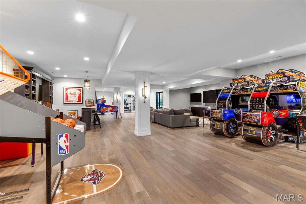 Welcome to 16 Bridle Lane, with over 17,000 sq ft of lavish space and designer finishes. A sexy-modern feel with clean lines welcomes you into the soaring ceiling of the grand foyer and great room. Entertain in the formal dining room, offering views into a glass-fronted wine cellar, creating an ambiance of refined taste and sophistication. The heart of the home lies in the kitchen, which includes an expansive butler’s pantry, complemented by a hearth room that overlooks the enticing pool area. At the center of it all stands a magnificent center island, adorned with a luxurious quartz slab. Indulge in the opulent primary suite featuring a luxurious bathroom, complemented by custom his and her walk-in closets. The lower level is an entertainment haven with bowling alley, batting cages, and more. The walk-out basement leads to a private putting green, and luxury pool oasis adorned with inviting tanning chairs and a cozy fire pit. An 8 car garage rounds out this exceptional property.